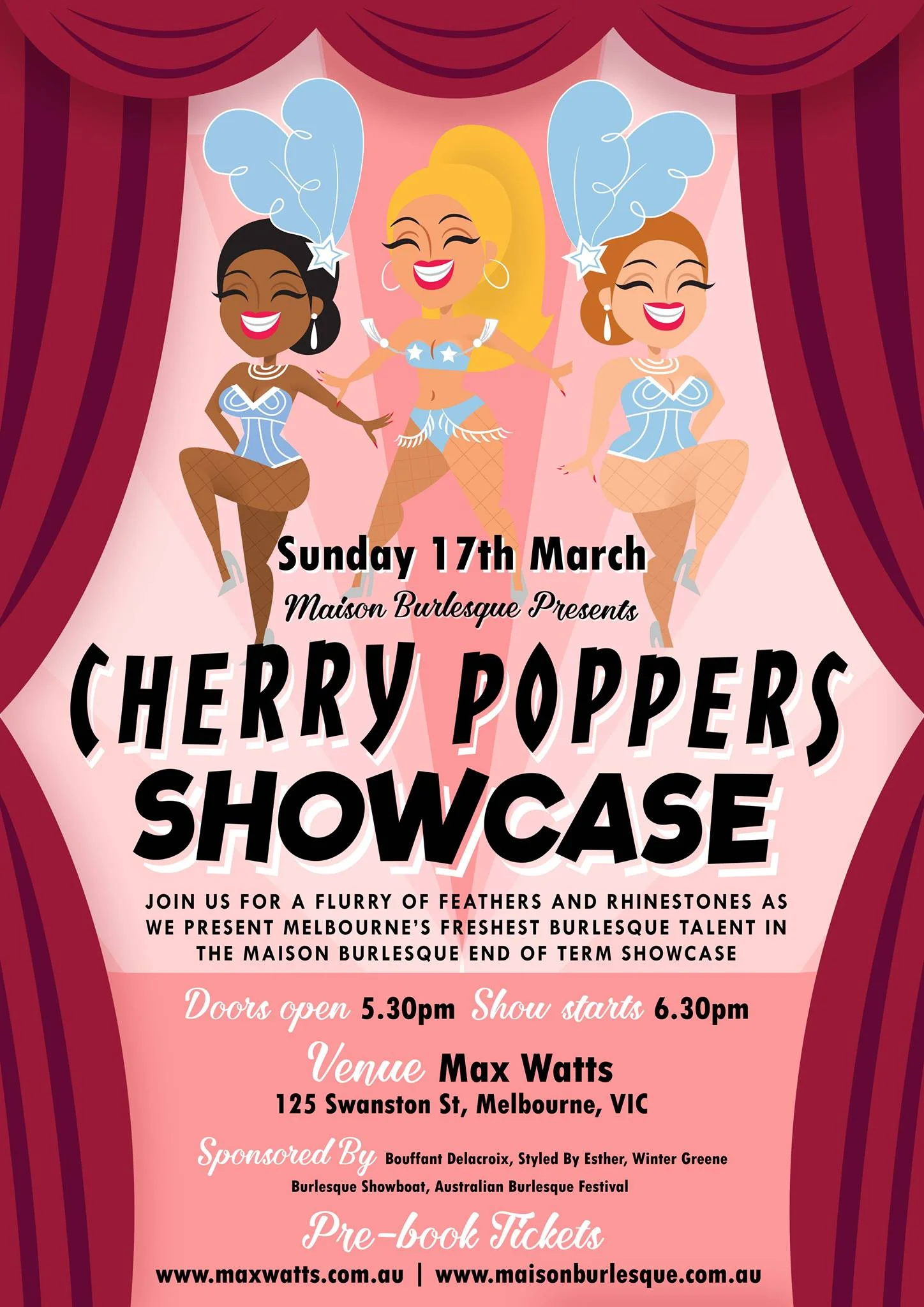 Join us for a flurry of feathers and rhinestones as we present Melbourne’s freshest Burlesque talent in our FIRST Maison Burlesque Cherry Poppers Showcase for 2019!